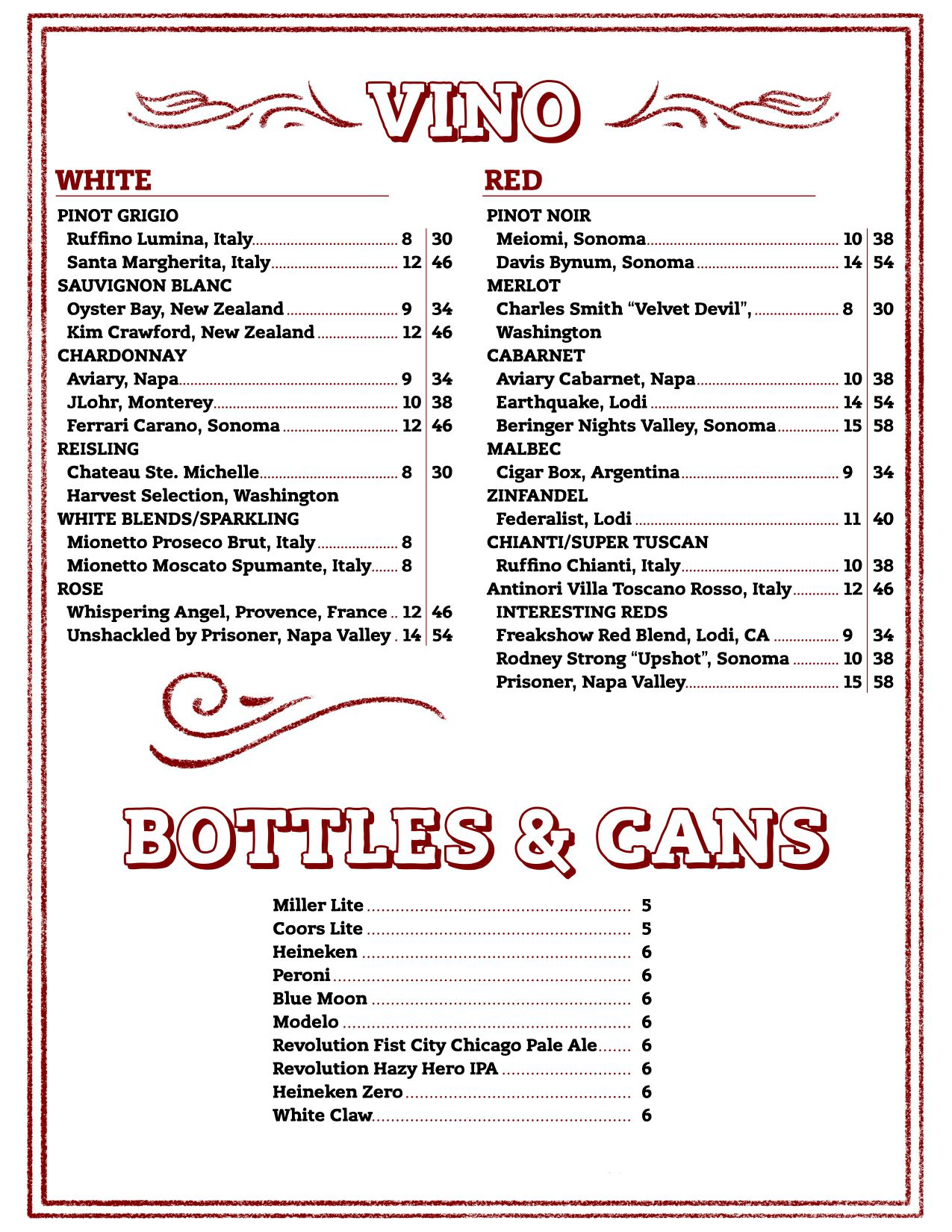 Wine Menu